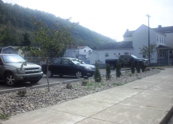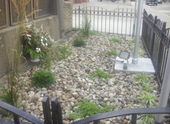 | Landscaping along sidewalk | Landscaping in front of Memorial Plaques |